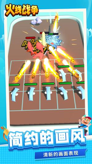 火线战争是结合跑酷、策略与塔防元素的创新型3D休闲竞技类游戏。玩家将在充满陷阱与敌人的赛道中操控角色奔跑,通过收集同类单位、合成强化来提升队伍战力,并在关键节点部署战术防线,最终击败敌人赢得胜利。