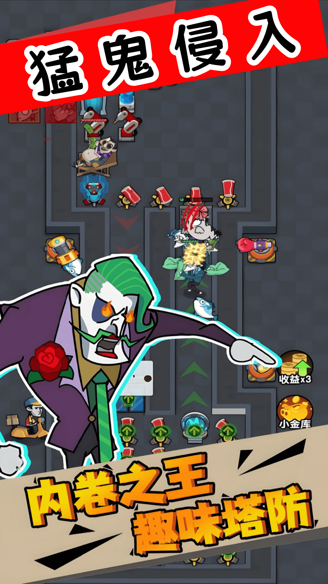猛鬼侵入游戏是一款画风很恐怖的休闲塔防游戏,熟悉的猛鬼元素,还有多样化的模式,你可以自由的选择一个开启你的策略之战,你作为一名想躺平的员工,为了应对猛鬼老板的攻击,你要小心的躲避和升级,完成一个个的挑战任务!