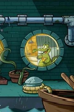 当你完成一关之后,玩家可以从浴帘的边缘把浴帘拉回去,从而偷窥洗澡中的小鳄鱼。