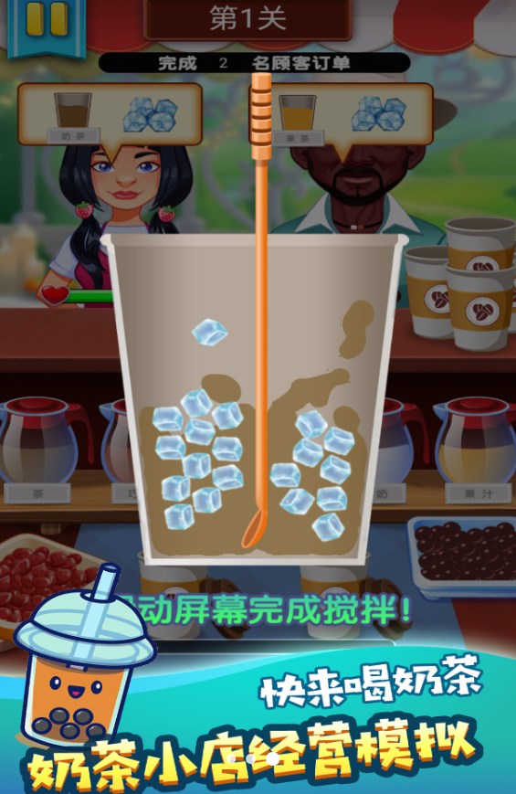 2、可以制作各种口味的奶茶给顾客,完成每笔订单任务;